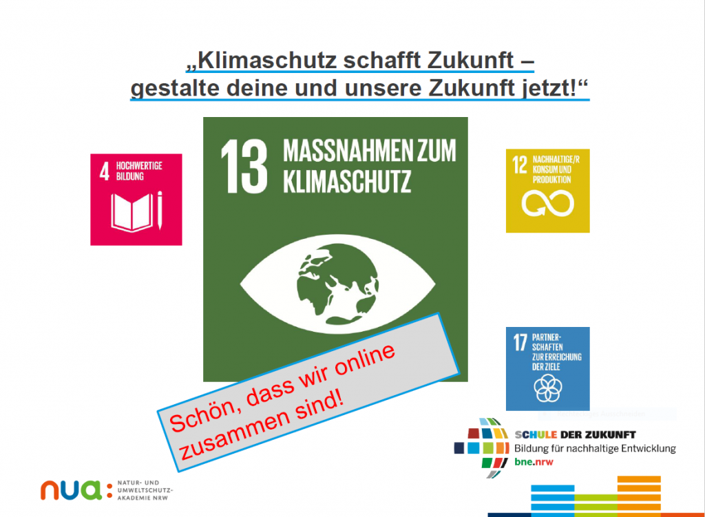 Die online durchgeführte NUA-Schülerakademie „Klimabildung“ für Schulen, die an den durch das MWIKE NRW geförderten Projekttagen Klimabildung mit Geoscopia Umweltbildung e.V. teilnehmen.