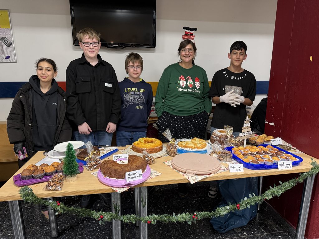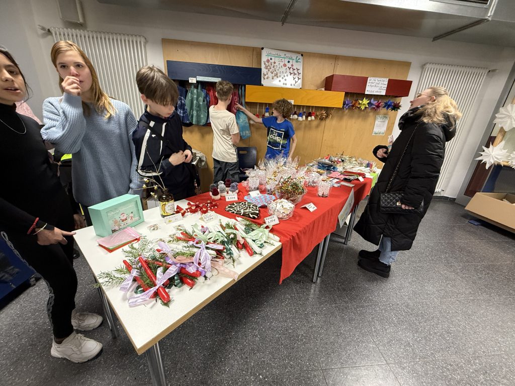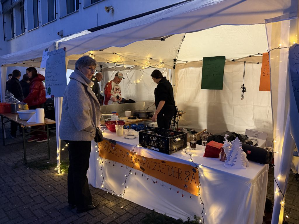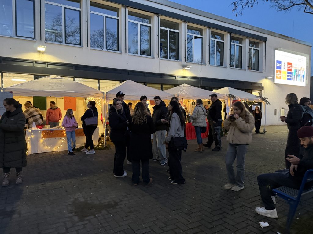 In weihnachtlicher Atmosphäre verwandelte sich das Schulgelände in einen Ort voller Lichterglanz, Düfte, Musik und Begegnungen. Mit viel Kreativität und Engagement hatten zahlreiche Klassen, Kurse, Arbeitsgemeinschaften sowie die Q2 im Vorfeld gebastelt, gebacken und geplant. Entstanden ist ein vielfältiger Markt mit liebevoll gestalteten Deko- und Geschenkideen, kulinarischen Köstlichkeiten und zahlreichen Mitmachaktionen für Groß und Klein.