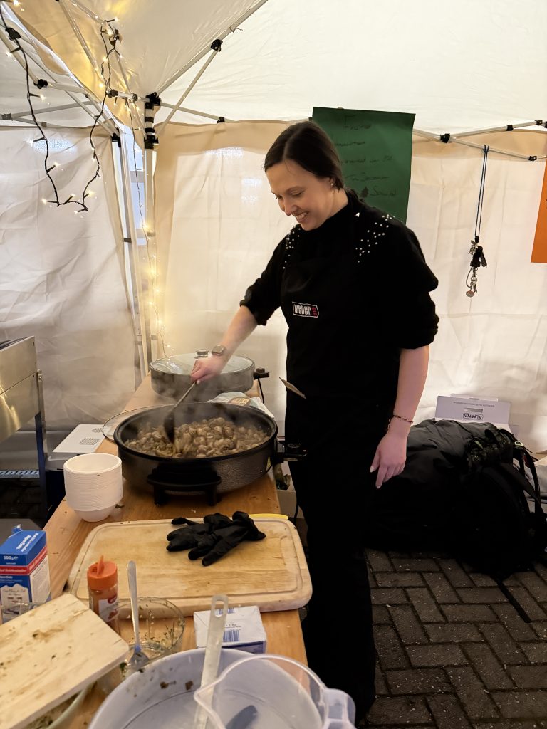 Von selbstgemachten Weihnachtskarten, Faltsternen und Upcycling-Ideen über Kekse, Marmeladen, Granola und Waffeln bis hin zu warmen Speisen, Stockbrot und Getränken – überall wurde spürbar, wie viel Herzblut in den einzelnen Ständen steckte. Besonders beliebt waren auch Aktionen wie Kinderschminken, Fotostudio, Schneeball-Zielwerfen oder die Hexenhaus-Werkstatt, die den Weihnachtsmarkt zu einem lebendigen Erlebnis machten.