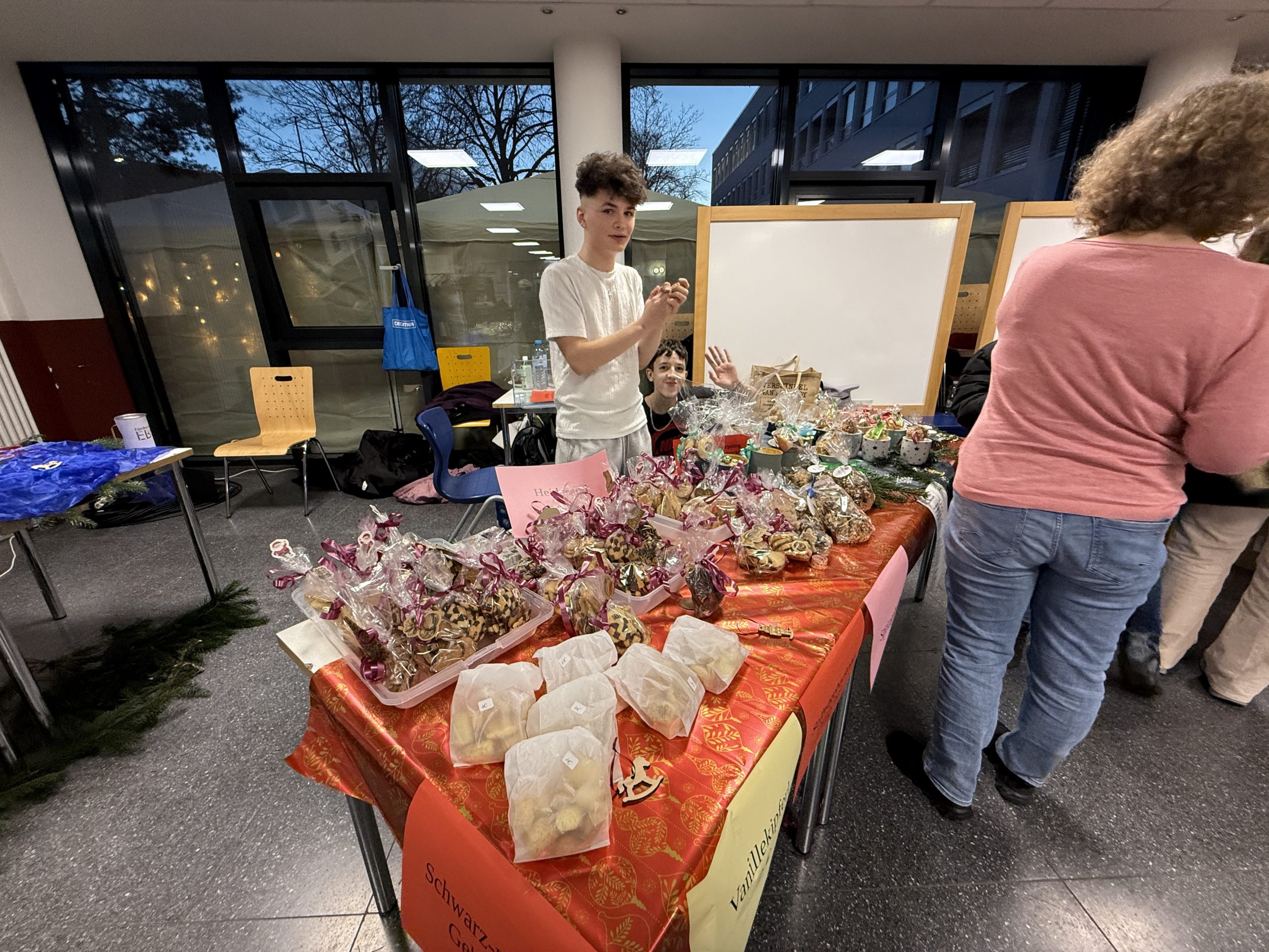 In weihnachtlicher Atmosphäre verwandelte sich das Schulgelände in einen Ort voller Lichterglanz, Düfte, Musik und Begegnungen. Mit viel Kreativität und Engagement hatten zahlreiche Klassen, Kurse, Arbeitsgemeinschaften sowie die Q2 im Vorfeld gebastelt, gebacken und geplant. Entstanden ist ein vielfältiger Markt mit liebevoll gestalteten Deko- und Geschenkideen, kulinarischen Köstlichkeiten und zahlreichen Mitmachaktionen für Groß und Klein.