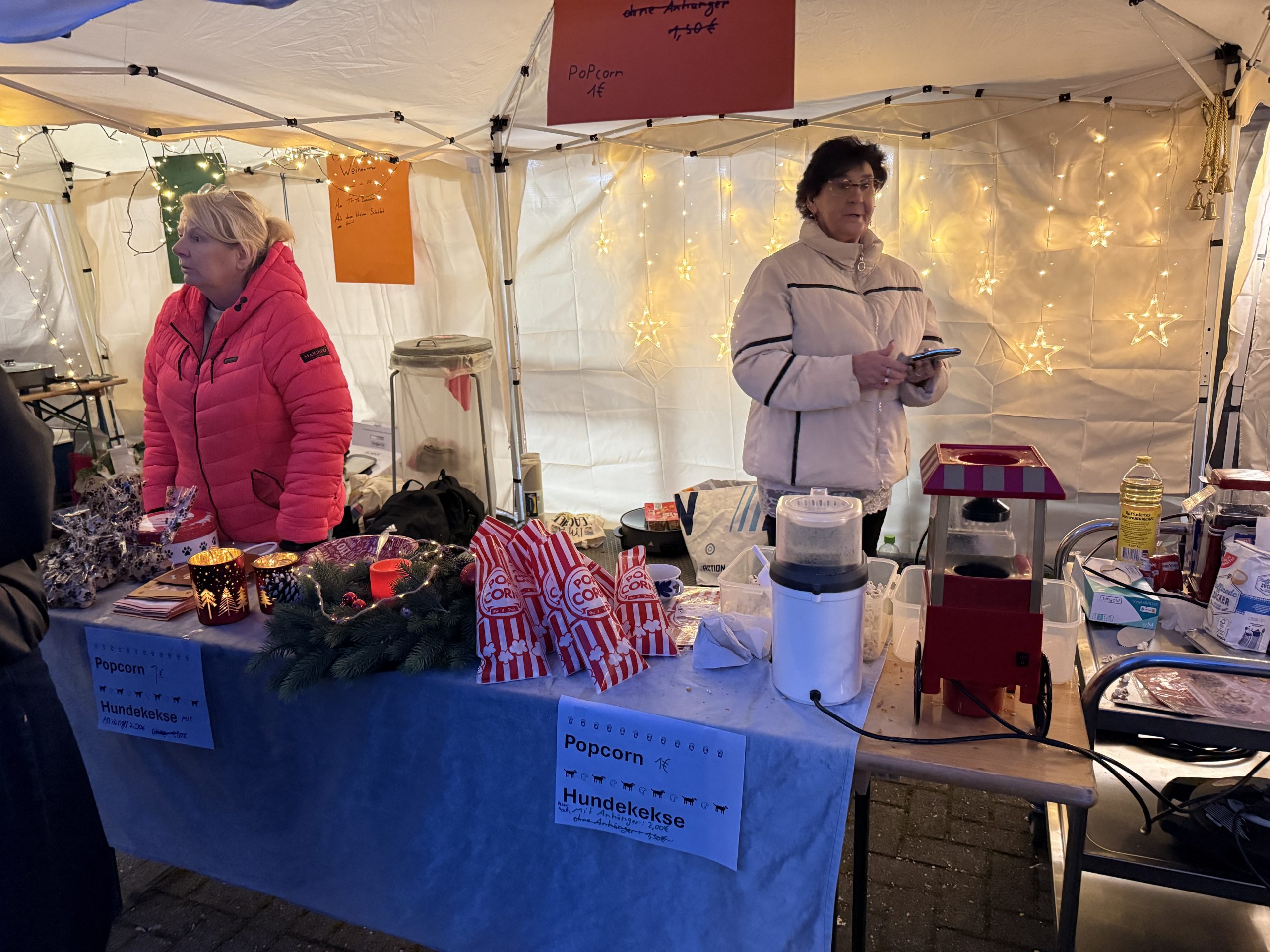 Von selbstgemachten Weihnachtskarten, Faltsternen und Upcycling-Ideen über Kekse, Marmeladen, Granola und Waffeln bis hin zu warmen Speisen, Stockbrot und Getränken – überall wurde spürbar, wie viel Herzblut in den einzelnen Ständen steckte. Besonders beliebt waren auch Aktionen wie Kinderschminken, Fotostudio, Schneeball-Zielwerfen oder die Hexenhaus-Werkstatt, die den Weihnachtsmarkt zu einem lebendigen Erlebnis machten.