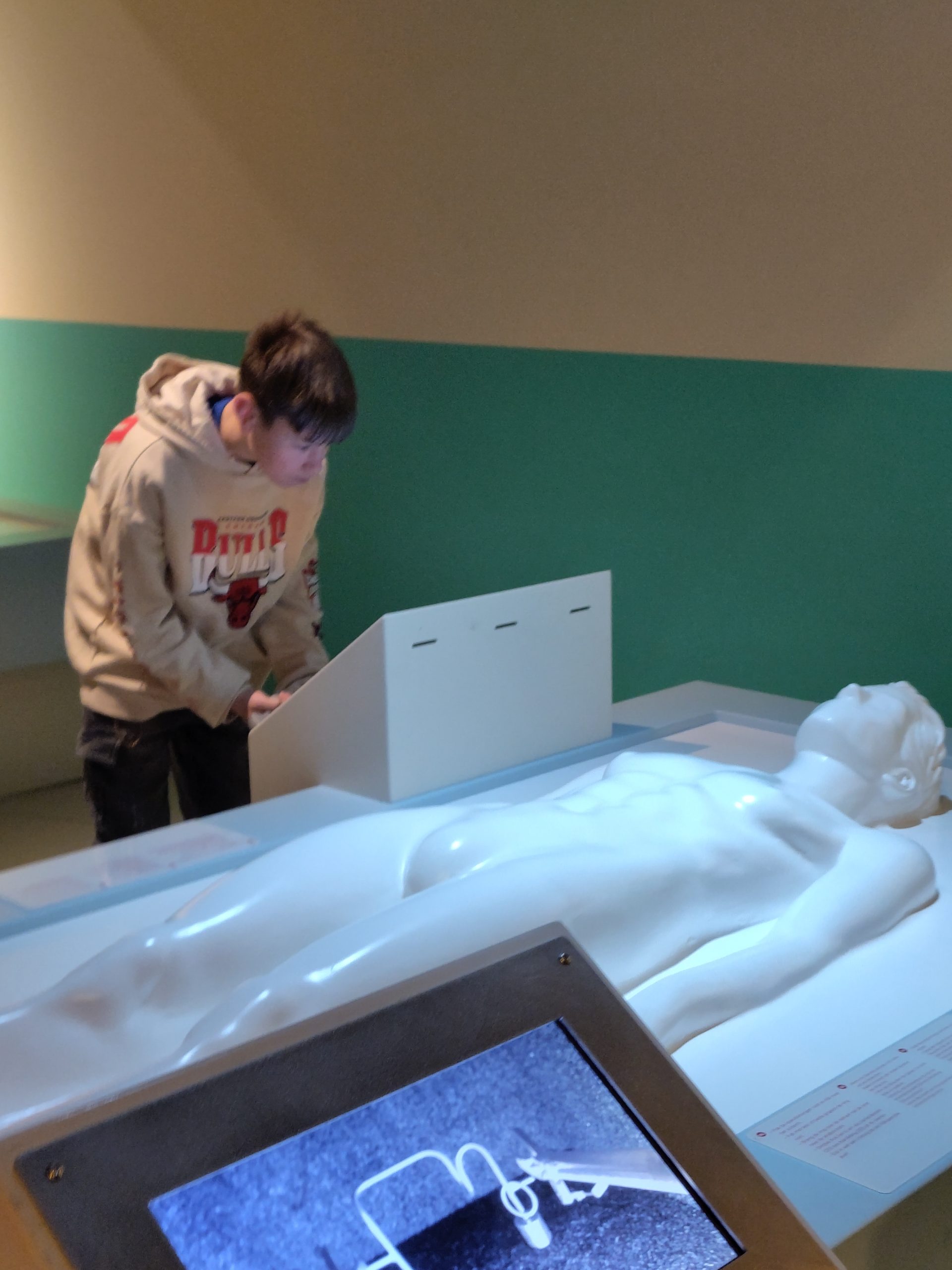 Wir sind an der Hans-Efing-Halle losgefahren. Wir sind um die 2 Stunden gefahren. Auf der Fahrt gab es viele lustige Momente! Am Museum angekommen haben wir eine Einweisung und Regeln bekommen. Dann konnte man mit einer Begleitperson herumlaufen und Sachen ausprobieren und anfassen z.B. die Lunge. Dann gab es noch so eine Aktion namens „Mensch vs Roboter“. Da werden verschiedene Experimente gemacht z.B. Schmecken. Am Ende haben wir ein Eis bekommen. Dann durfte man in die Stadt.