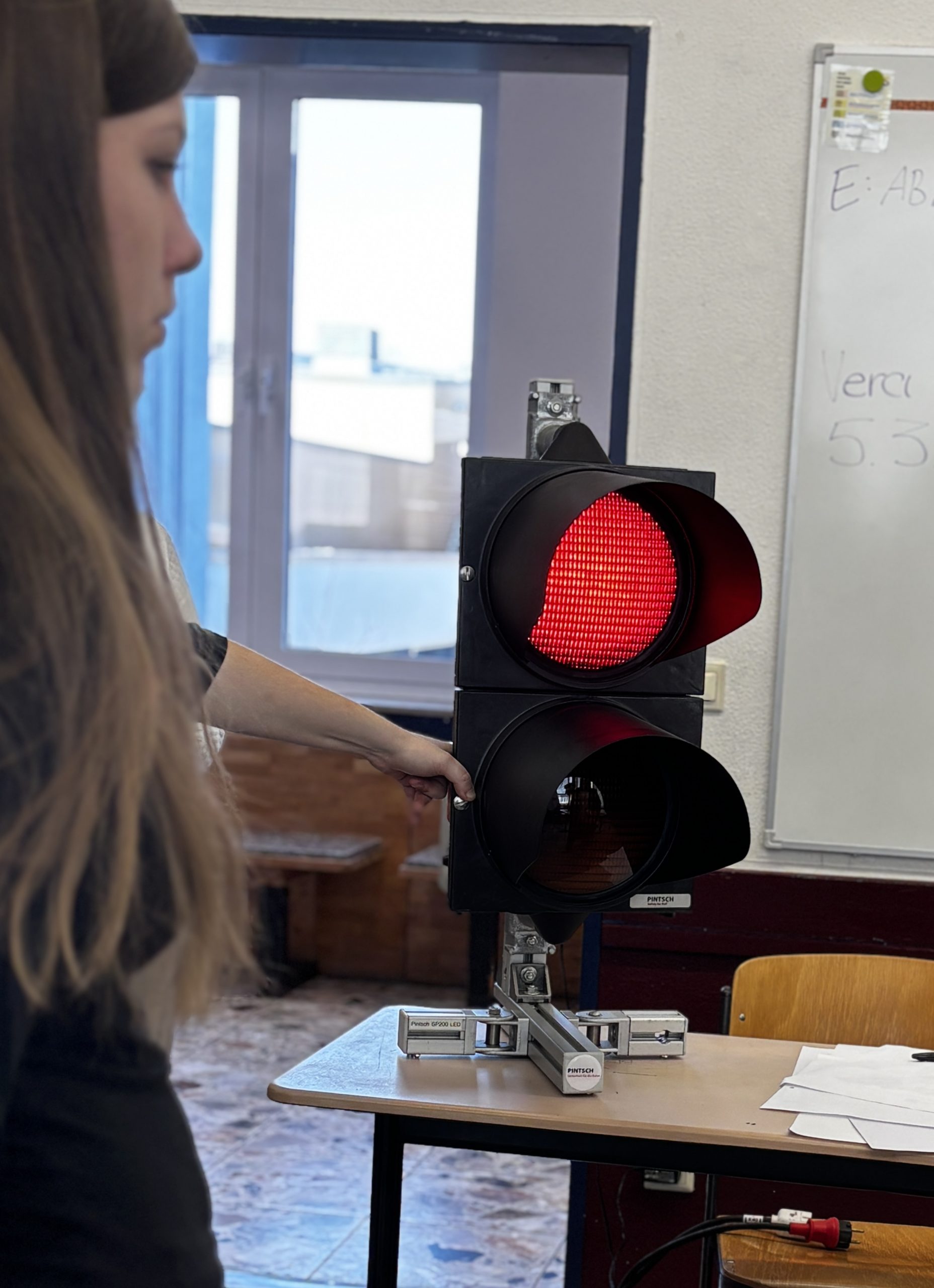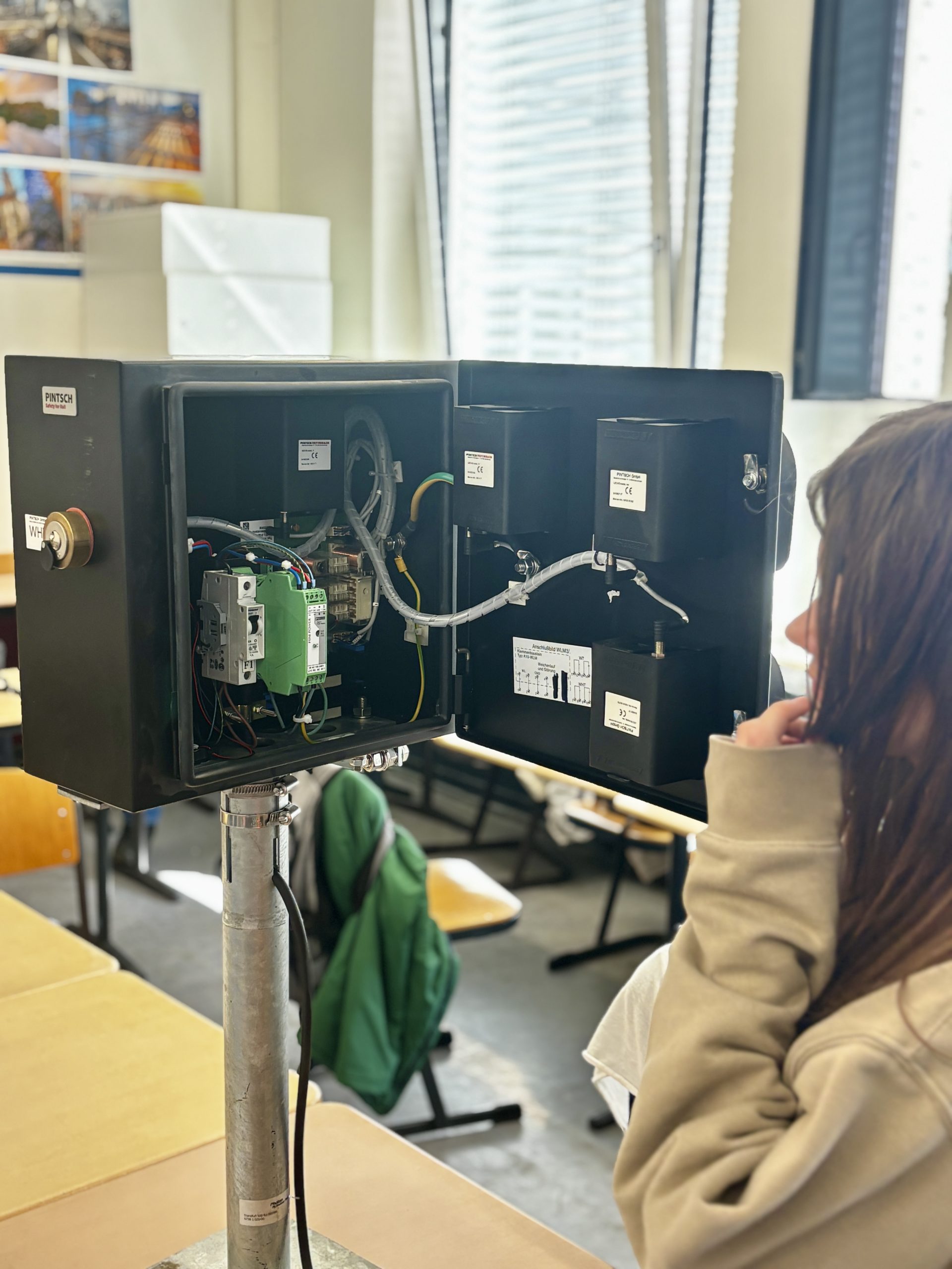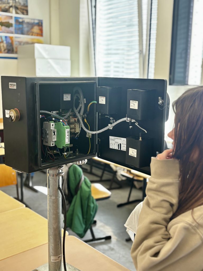 In der Schule zeigen sich Schüler/innen beeindruckt von Drohnenflügen durch den Betrieb oder Eisenbahnampeln zum Anfassen.