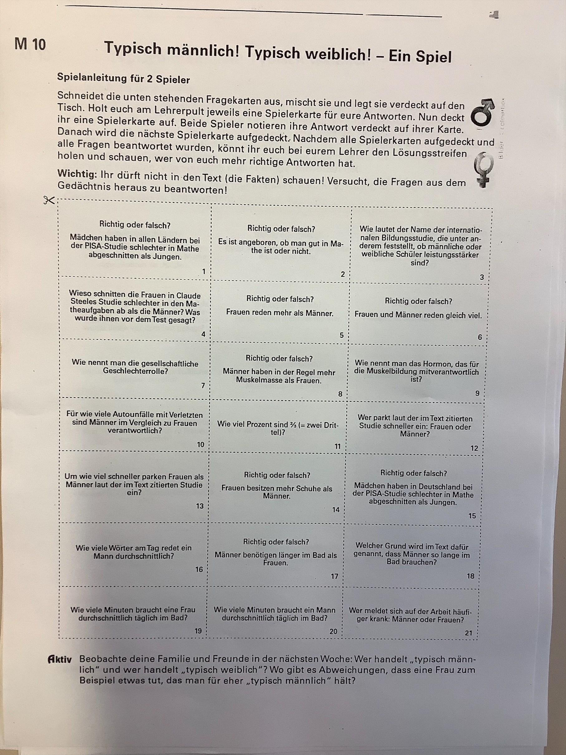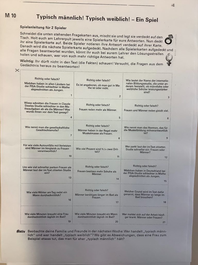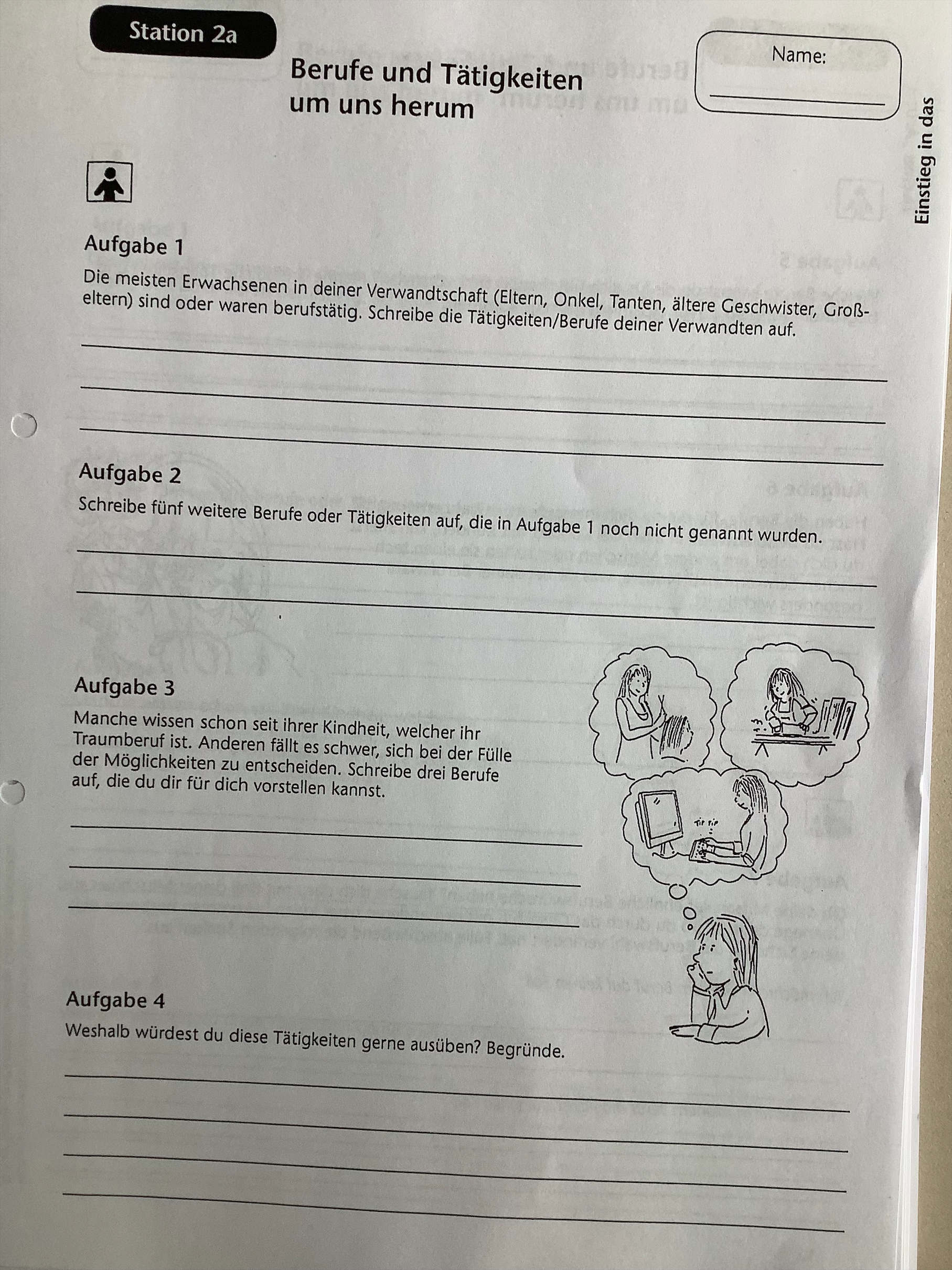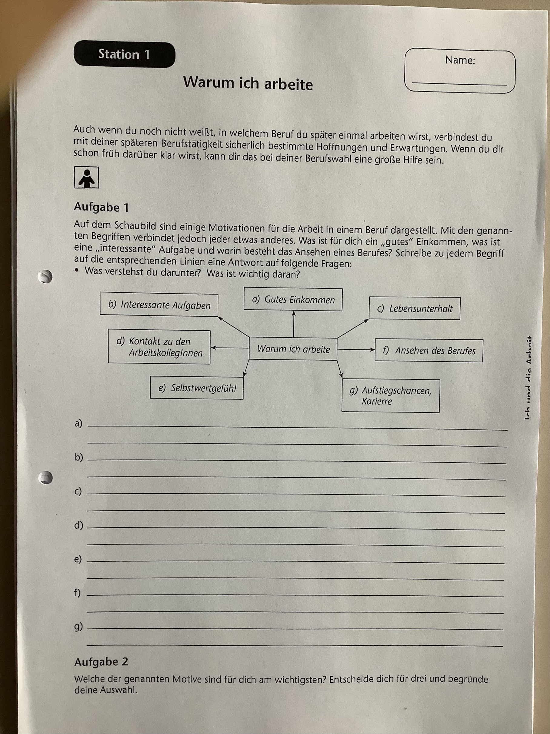 Vorbereitet durch die Klassenlehrer/innen und methodischen Einsatz von Arbeitsblättern nimmt der Future Talk, die Diskussionsrunde zwischen Schüler/innen und Firmenvertretern/innen (13) auch durchaus persönlich-reflektierende Züge an. Welche Berufe kennen unsere Schüler/innen überhaupt (14), welche Bedeutung hat Arbeit in ihrem Leben (15,16), unterteilen sie Berufe in typisch männliche und weibliche (17)? Kennen die Firmenvertreter/innen selbst kritische oder auch überraschende Phasen in ihrer Berufsfindung, in ihrer Berufslaufbahn? Muss man im Berufsleben Kompromisse eingehen? Welche? Und wie wichtig ist es ihnen „nachhaltig“ zu arbeiten?