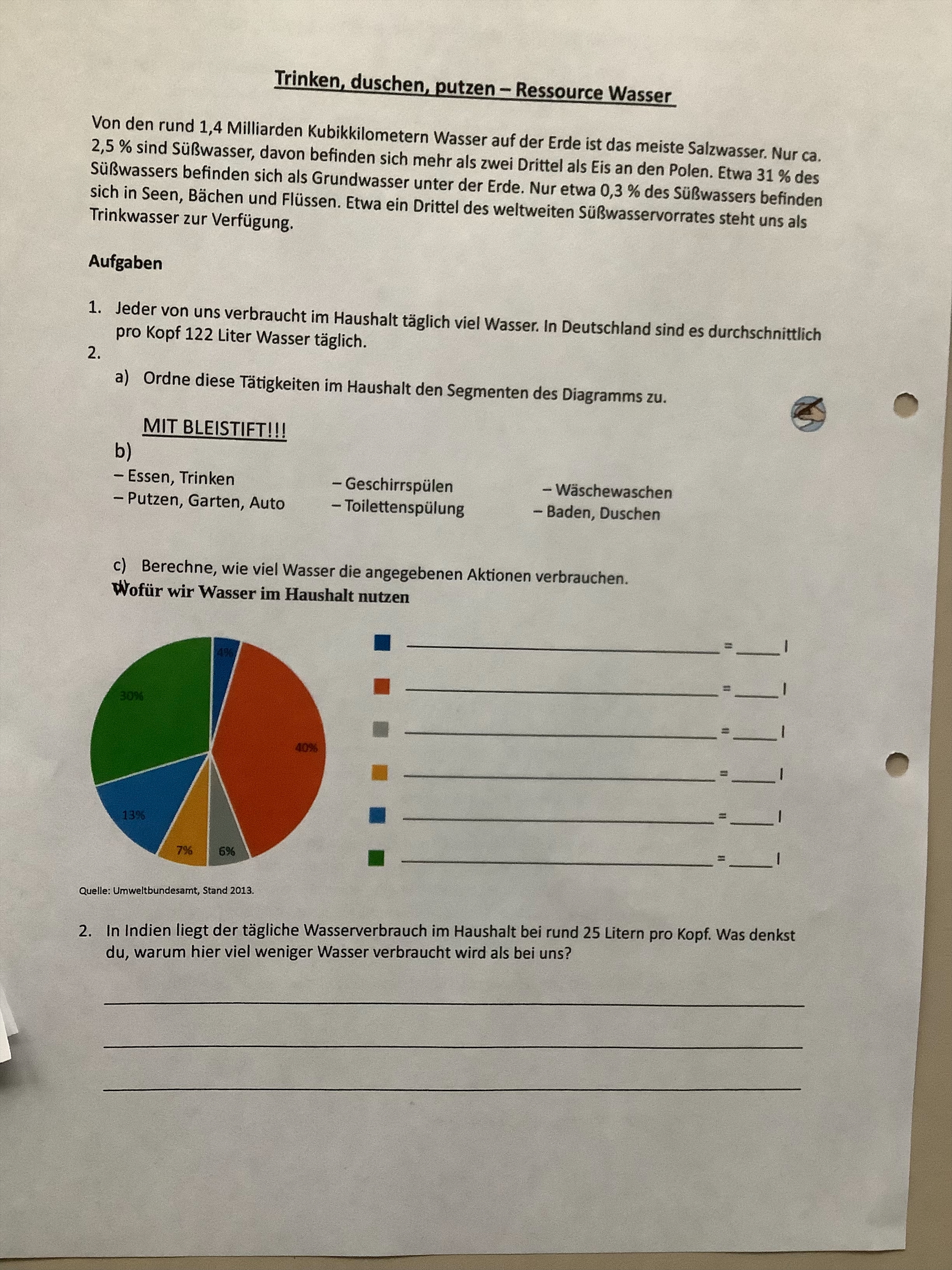 Die 17 Social Development Goals (SDGs)/ Nachhaltigkeitsziele werden erklärt und sowohl in ihrer betrieblichen als auch individuellen Relevanz beleuchtet – im Video, in Gruppenarbeitsphasen, in digitaler Erarbeitung des eigenen „ökologischen Fußabdrucks“. Die Ressource Wasser ist hier ein dankbares Beispiel für persönliche Reflektion der Angewohnheiten in Sachen Trinken, Duschen, Putzen, Wasserverunreinigung. Ein Klärwerk – was passiert dort? Die Emscher – wo ist die eigentlich? Schüler/innen lernen.