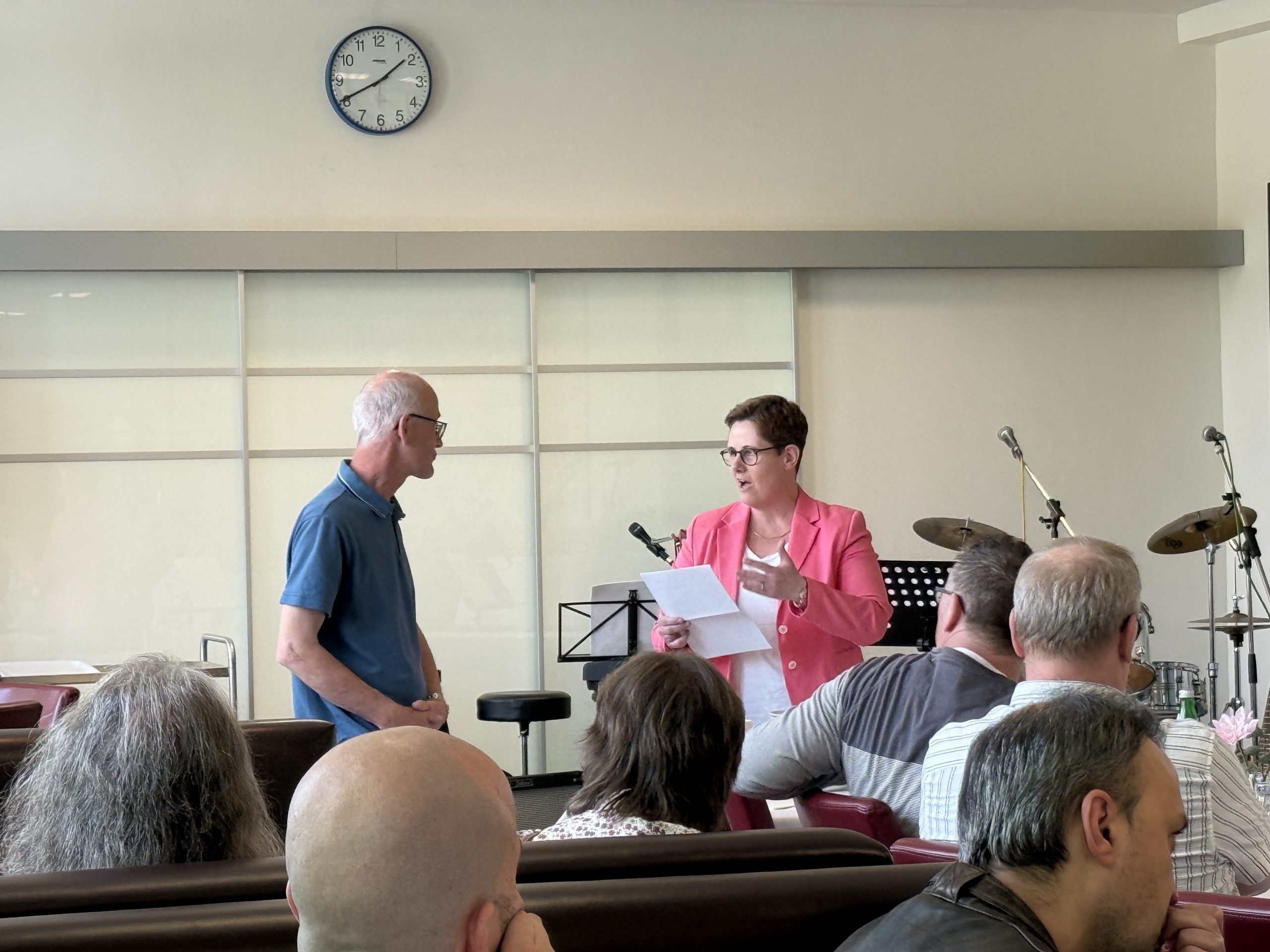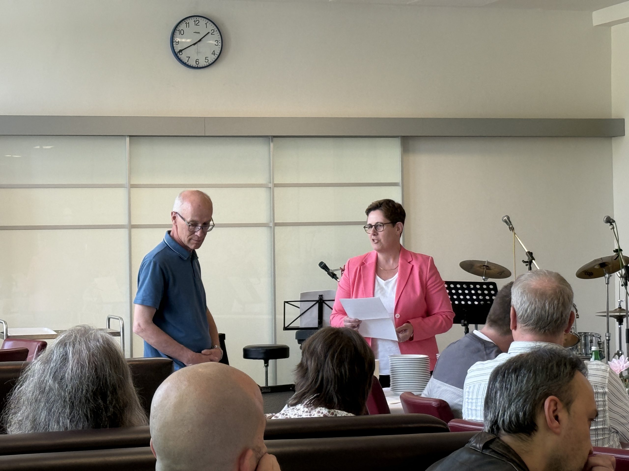 Für die passende musikalische Begleitung sorgte unsere Lehrerband, die mit ihren Musik- und Gesangseinlagen einmal mehr für eine besondere Atmosphäre sorgte. Im Rahmen der Feier wurden zudem mehrere Präsente überreicht – als Zeichen der Wertschätzung und des Dankes für die vielen Jahre engagierter Arbeit.