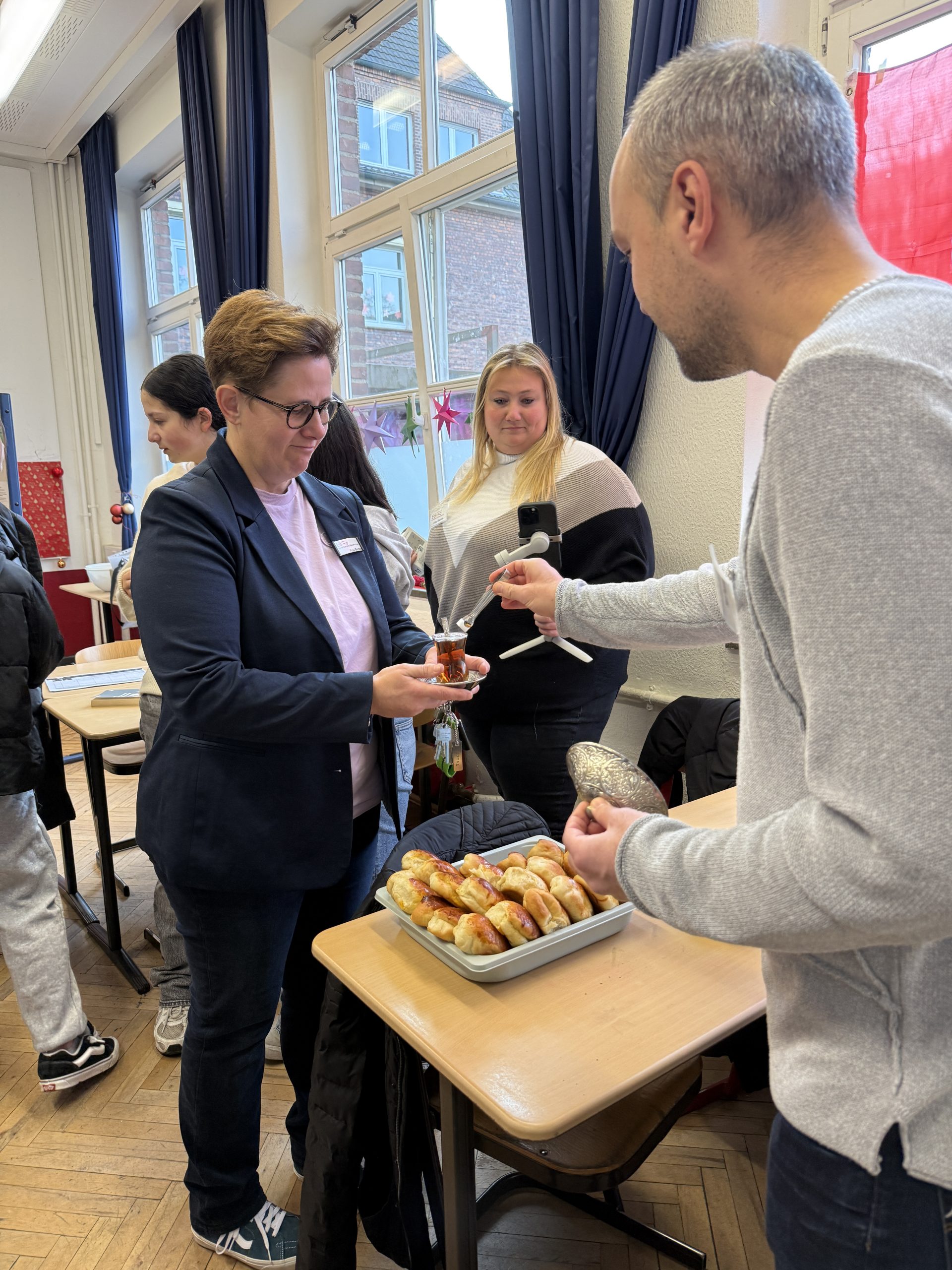 Im Dachgeschoss präsentierten sich Betreuung, Bibliothek, der Förderverein sowie die SV. Frische Waffeln und Café-Angebote sorgten für eine gemütliche Atmosphäre zum Gespräch.