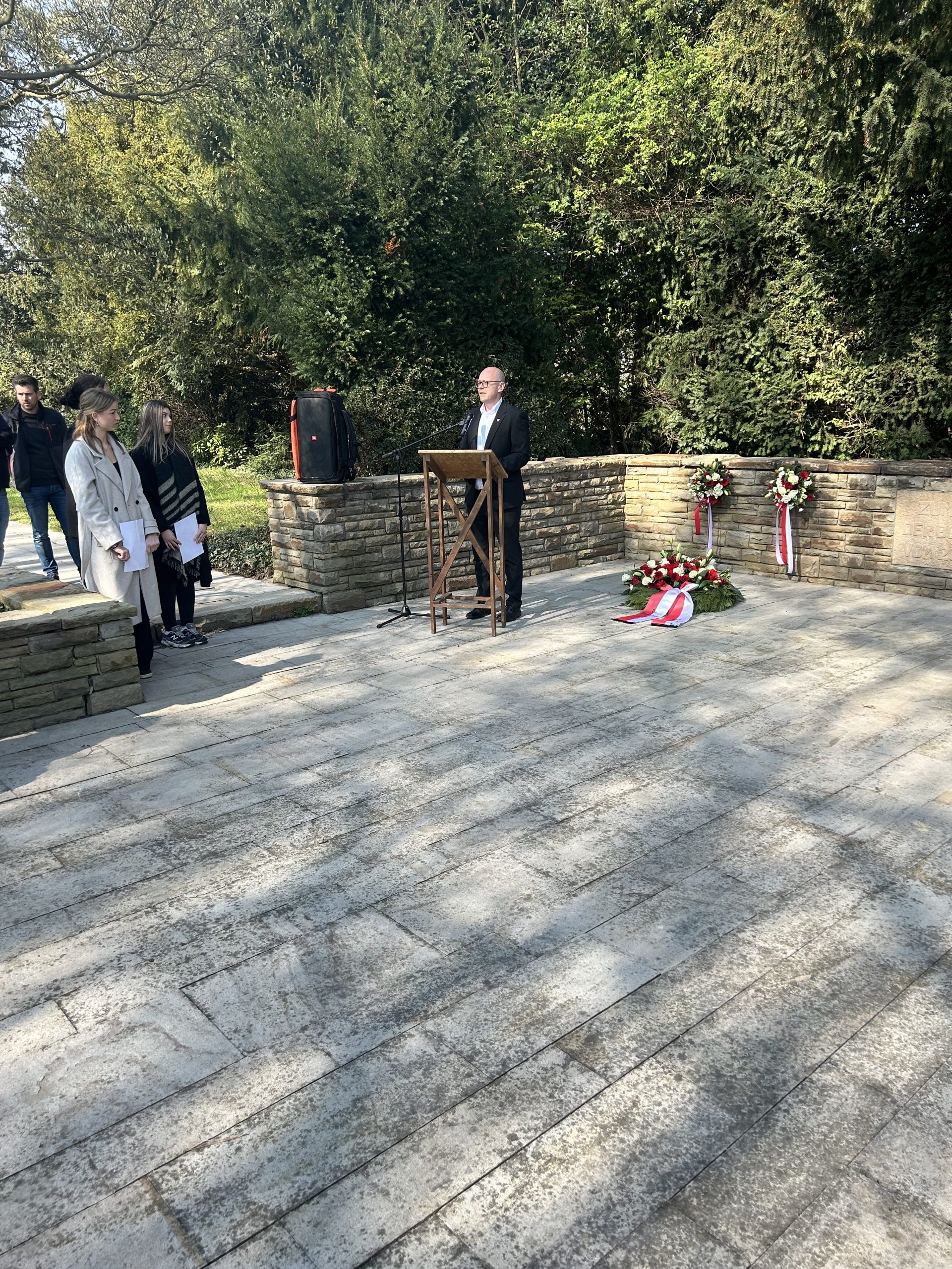 Heute, am 23.03.2026, fand am Vormittag auf dem Parkfriedhof in Dinslaken bei sonnigem Wetter die Gedenkveranstaltung an die Bombardierung Dinslakens vor 81 Jahren statt.