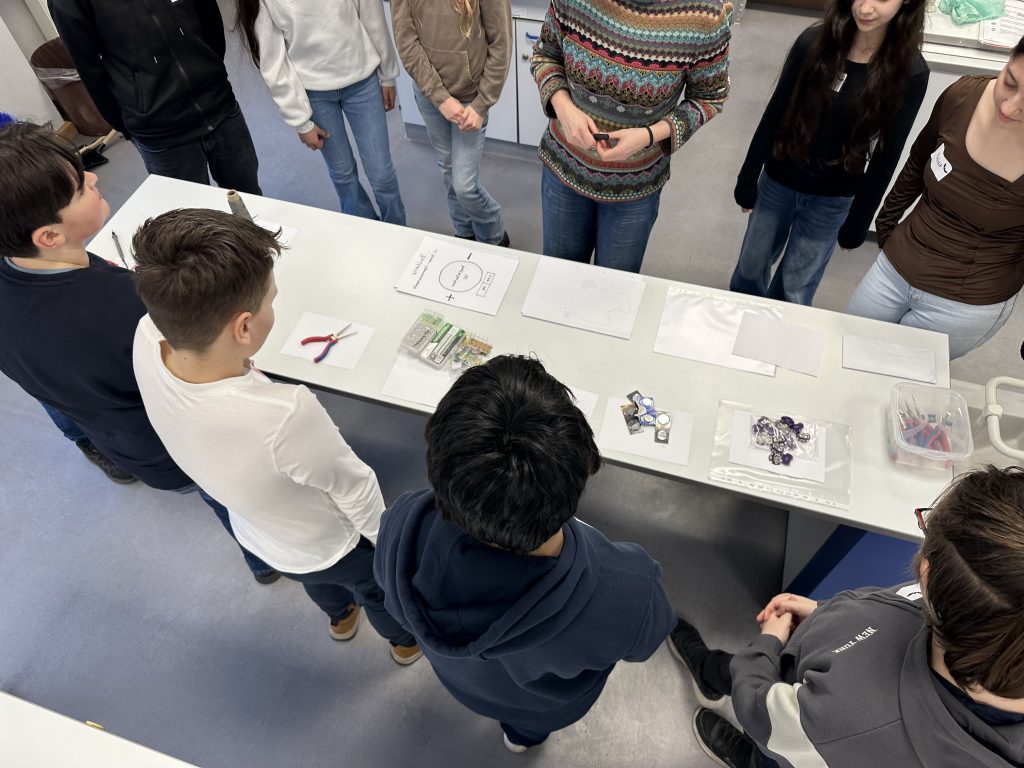 Im Workshop „Fledermaus in Fashion“ lernten die Schülerinnen und Schüler Wissenswertes rund um die Fledermaus, von ihren Lebensräumen über ihre besonderen Fähigkeiten bis hin zu ihrer Bedeutung für das Ökosystem. Darüber hinaus erhielten sie einen ersten praxisnahen Einblick in die Elektrotechnik sowie in die textile Verarbeitung.