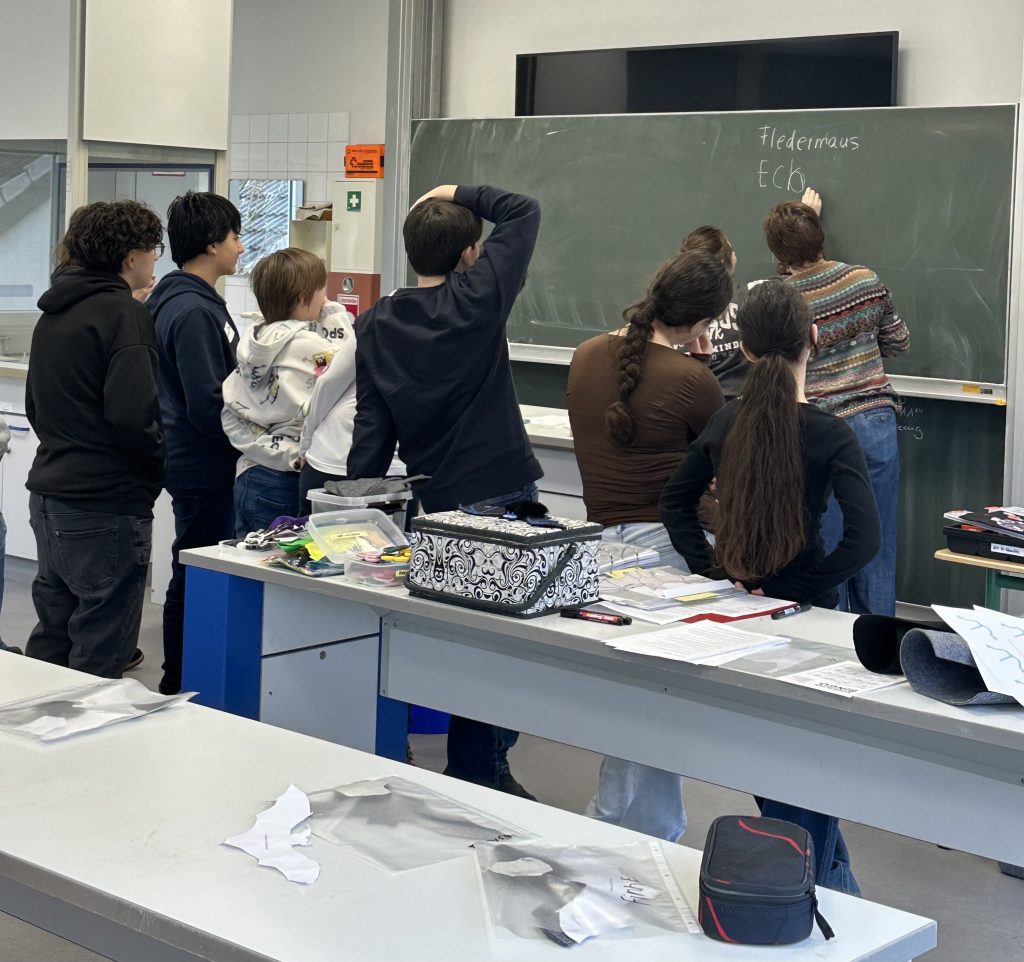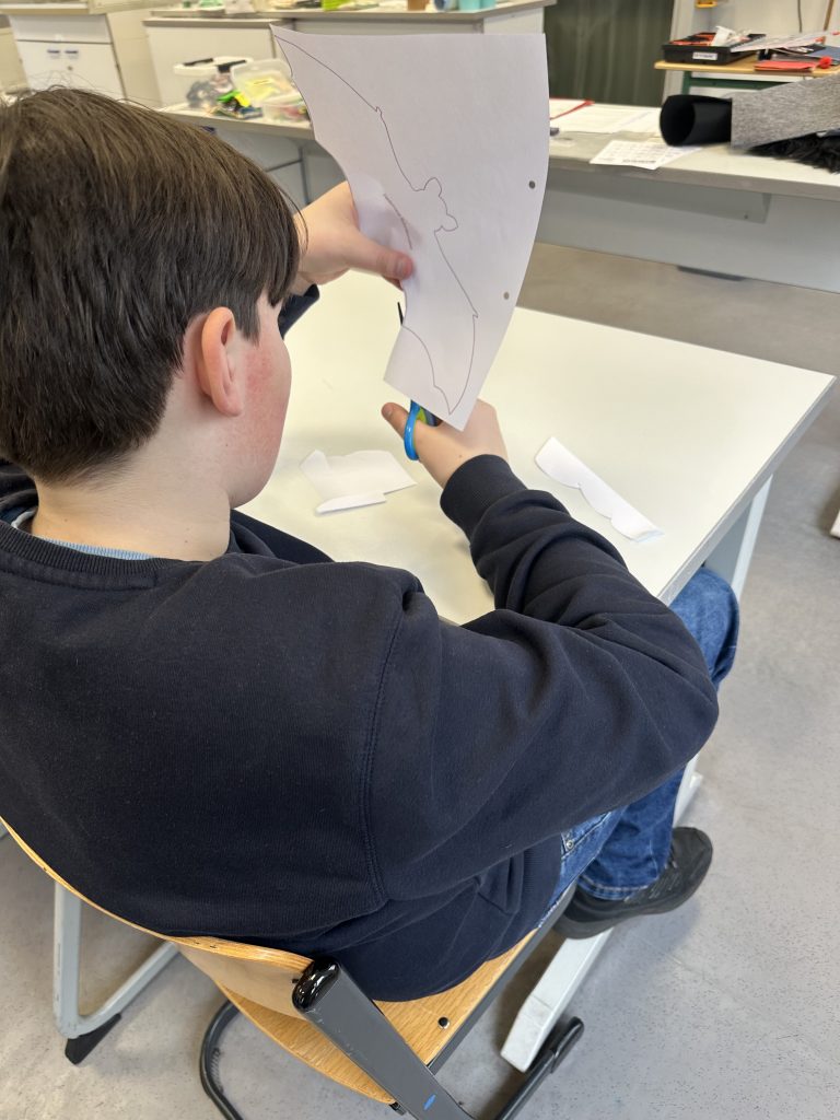 Zwischen den praktischen Arbeitsphasen sorgten kleine Spiele und interaktive Übungen für Abwechslung. Diese dienten entweder dazu, das neu erworbene Wissen über Fledermäuse zu vertiefen oder boten einen willkommenen Ausgleich zur konzentrierten Hand- und Kopfarbeit.
