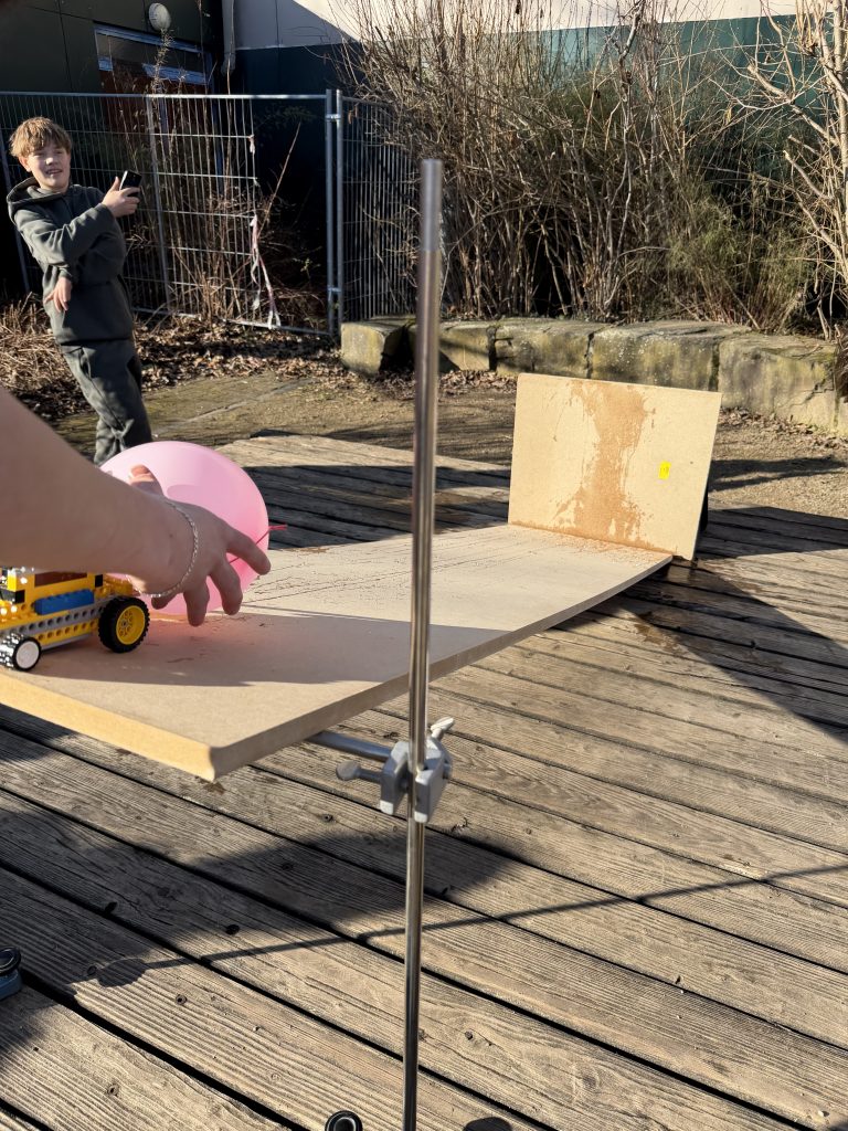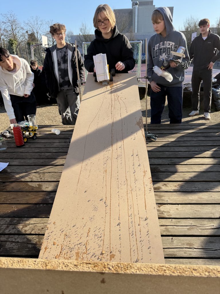 Ein Schwerpunkt war der Bau von Fahrzeugen, die einen Crashtest möglichst unbeschadet überstehen sollten. Die Aufgabe bestand darin, eine Konstruktion zu entwickeln, die bei einem Aufprall den transportierten Inhalt bestmöglich schützt. In kleinen Teams wurden Ideen entwickelt, Modelle gebaut, getestet und immer wieder verbessert. Dabei standen Kreativität, technisches Verständnis und Teamarbeit gleichermaßen im Vordergrund.