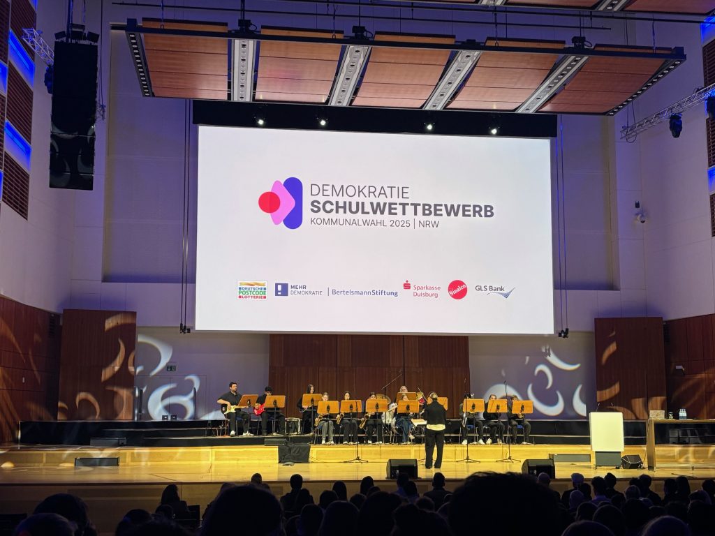 Am vergangenen Freitag, den 30.01., fand die Preisverleihung zu diesem Wettbewerb in der Mercatorhalle in Duisburg statt. Dort wurden die besten fünf Plätze geehrt – die Beiträge waren sehr vielfältig. Der Sowi-Grundkurs unserer Schule hat etwa einen Account bei Instagram erstellt, auf dem verschiedene Videos hochgeladen wurden. Darunter befanden sich unter anderem Interviews, die mit den BürgermeisterkandidatInnen am Rande der Podiumsdiskussion in unserer Aula geführt wurden. Aber auch die Beiträge der anderen Schulen konnten sich sehen lassen, es wurde etwa ein eigener Wahl-O-mat entwickelt, der den ErstwählerInnen eine Orientierung geben sollte, welche Partei sie wählen können.