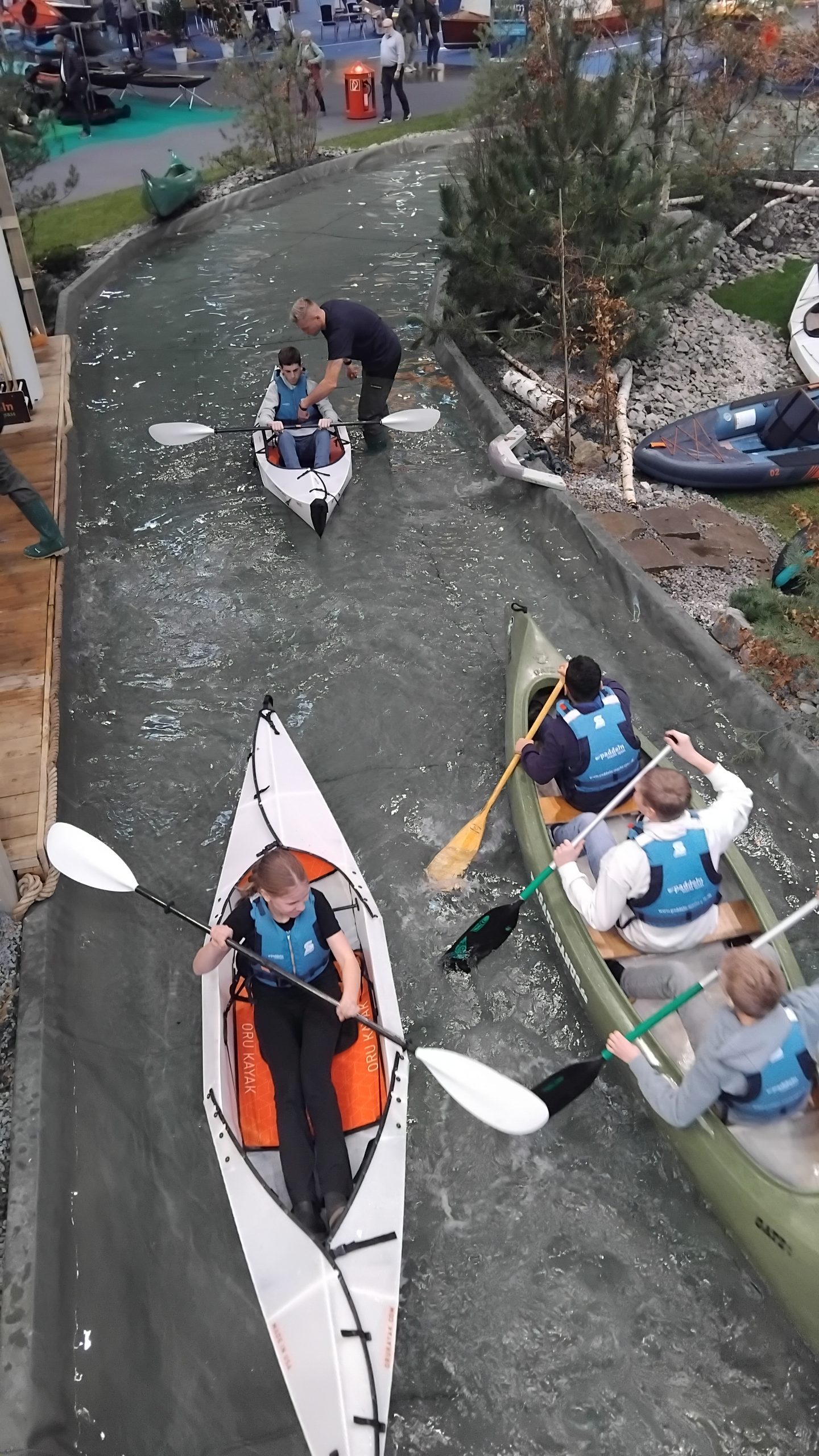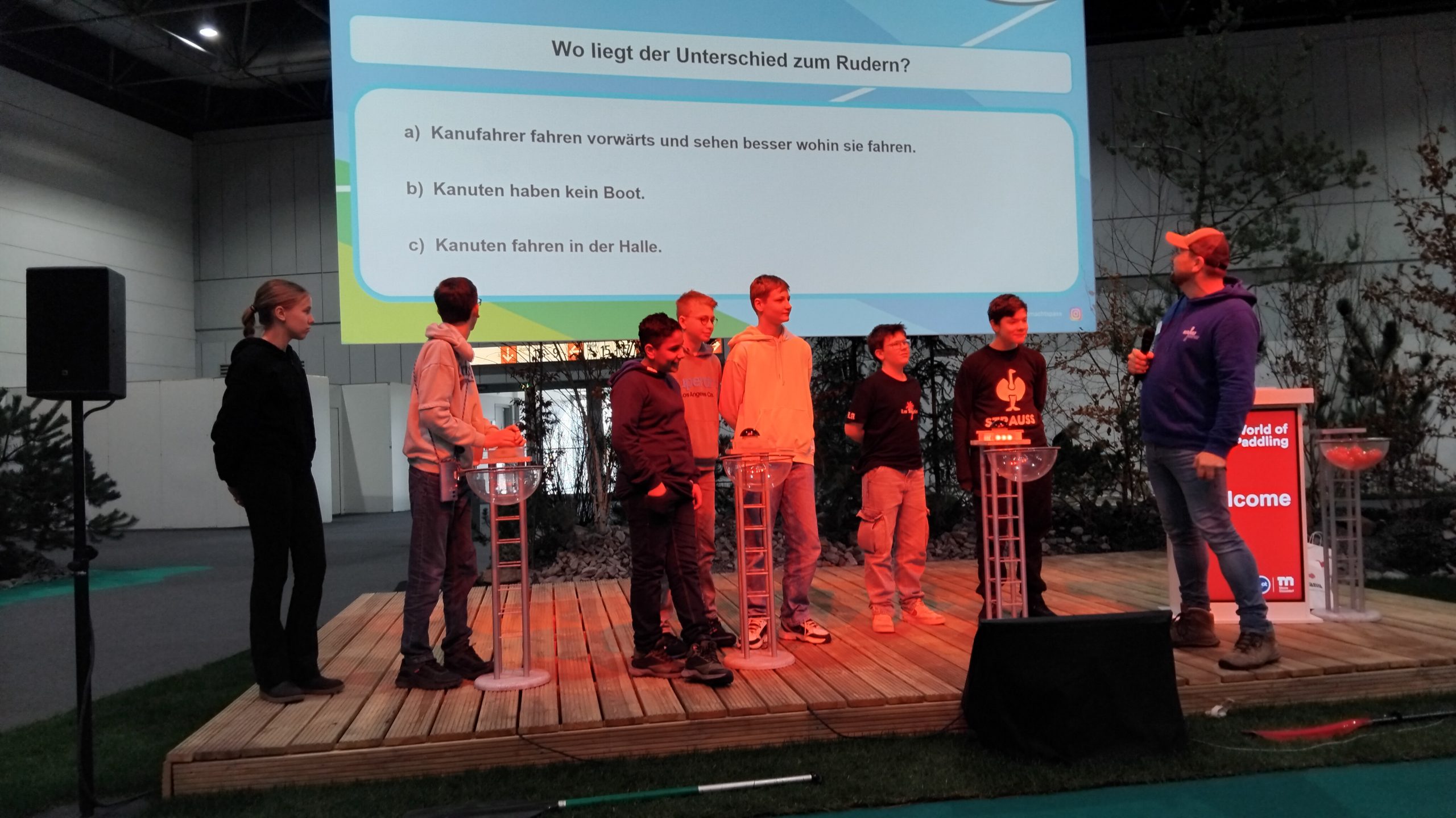 Ein besonderes Highlight war der Besuch mehrerer großer Yachten, die die Schülerinnen und Schüler auch von innen besichtigen durften. Darüber hinaus nutzte die Gruppe zahlreiche Mitmachangebote: In einem großen Indoor-Wasserbecken konnten die Schülerinnen und Schüler paddeln, im Klettergarten ihre Geschicklichkeit unter Beweis stellen und auf der Show-Bühne an einem Quiz teilnehmen.