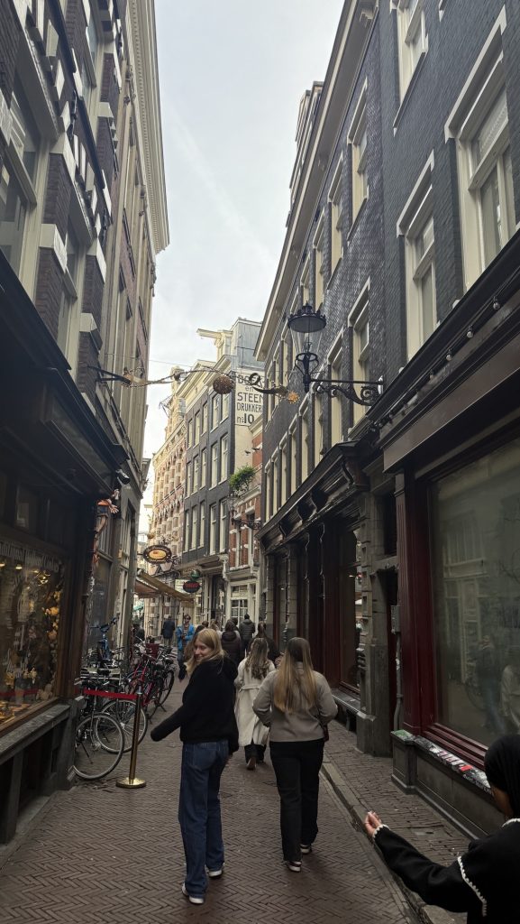 Schon am Nachmittag ging es weiter mit einer Grachtenfahrt. Amsterdam wirkt vom Wasser aus nochmal ganz anders, die typischen schmalen Häuser, einige dieser Häuser sind sehr schief, dass man sich fragt, wie sie überhaupt stehen können. Unser Guide war sehr unterhaltsam und hat uns spannende Infos über die Stadt erzählt. Den Abend durften wir frei gestalten. Viele von uns haben die Zeit genutzt, um durch die Stadt zu schlendern und die bekannten viralen Food-Spots zu testen, die man sonst nur aus TikTok kennt.